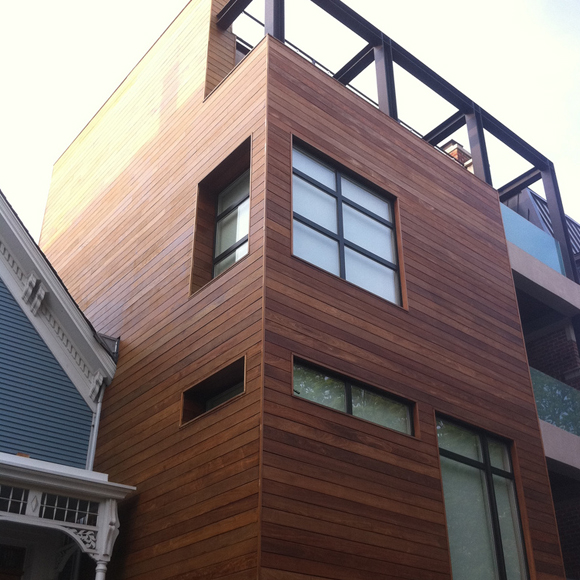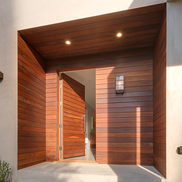 Our patented siding system comes complete with everything needed to create a perfect wood rainscreen with a fastener-free appearance. That’s thanks to the Rainscreen Clip System, a proven, high-quality solution for constructing wood rainscreen walls. When you transition to soffits or interior walls you really don’t need a rainscreen system. We manufacture a T and G pattern that mimics the look of the rainscreen and goes up just like normal T and G over plywood or drywall over wood studs. Again – saves money and install time.